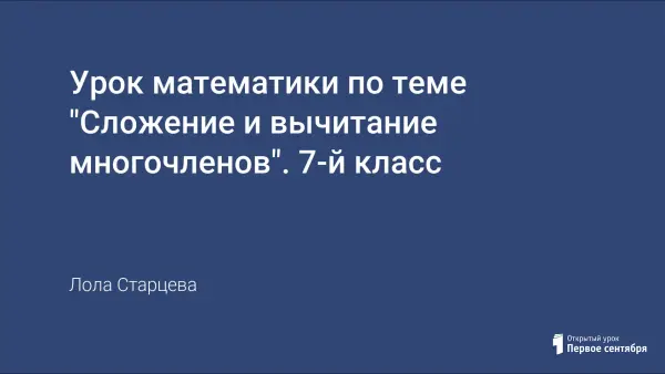 Урок формирует у обучающихся умения и навыки решать типовые математические задания на сложение и вычитание многочленов. Учитель использует творческие задания, применяя элементы игры. Обеспечивает у детей интенсивное развитие логического мышления, разносторонние творческие способности.