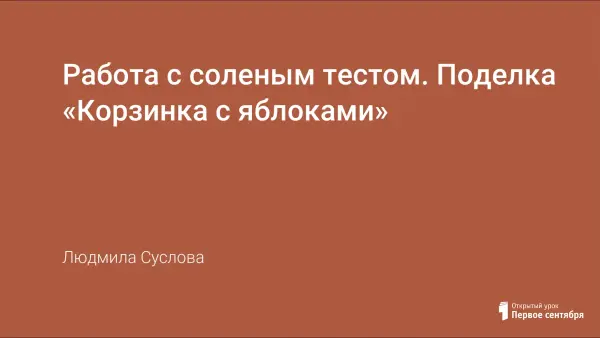Урок технологии представлен в форме мастер-класса, который проводит ученица 4-го класса. На уроке дети знакомятся с изготовлением цветного соленого теста, получают полезные советы по работе с ним и учатся поэтапно мастерить поделку «Корзинка с яблоками». Все этапы работы по поделке с иллюстрацией и описанием представлены в презентации к уроку.