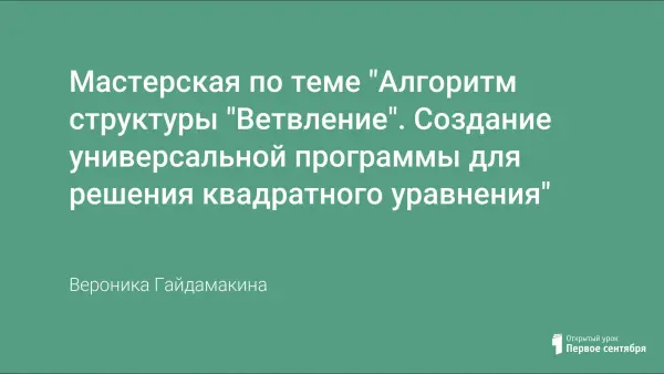 Разработка урока информатики в технологии «Педагогические мастерские» по теме «Алгоритм структуры «Ветвление». Урок построен строго по алгоритму проведения мастерских и может быть использован для проведения бинарного урока (алгебра/информатика).