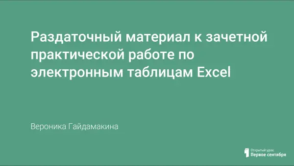 Статья представляет собой подборку заданий для проведения итоговых уроков по изучению Excel. Задания снабжены пояснениями, которые с каждым упражнением становятся все менее подробными. Такой подход заставляет учащихся не просто выполнять предложенные упражнения, но и запоминать приемы работы, ведь иначе придется возвращаться к уже выполненной работе и разбираться с заданием заново; а также способствует простому и понятному для учащихся оцениванию их работы.