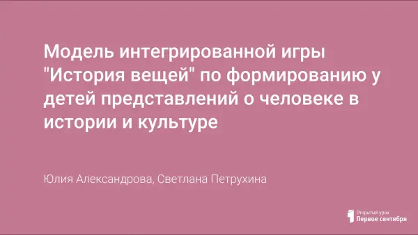 Модель интегрированной игры "История вещей" по формированию у детей представлений о человеке в истории и культуре