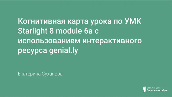 В данной статье автор представляет разработку когнитивной карты на основе УМК Starlight 8 module 6a. Выбрана тема урока “Changes”, связанную с внешностью человека и влияние внешности на окружение.