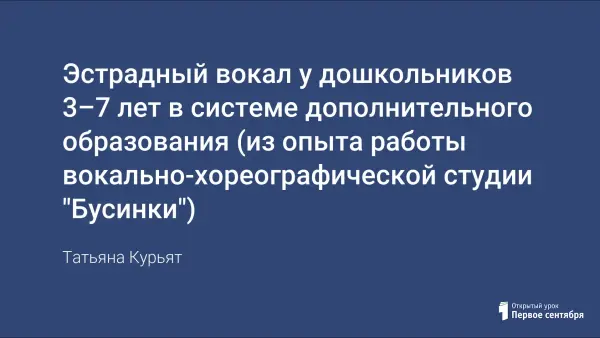 В статье представлен опыт работы руководителя образцового детского коллектива вокально-хореографическая студии «Бусинки», где показаны многолетние наработки практической деятельности в области эстрадного вокала у дошкольников.