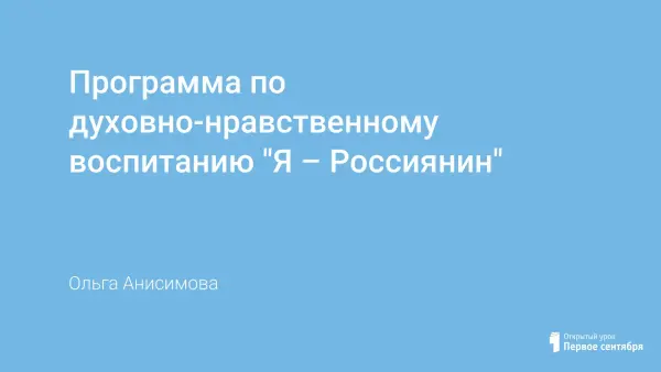 Цель программы: создание условий для духовного развития личности ребенка; формирование нравственных качеств личности путем приобщения ее к истокам отечественной духовной культуры.