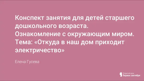 Цель занятия: формирование у детей элементарных представлений об электричестве, его значение в жизни человека.