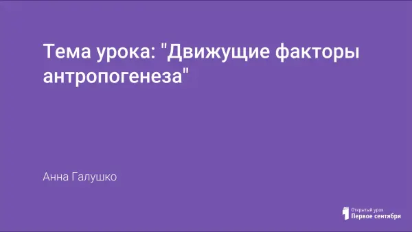 Цели урока: способствовать формированию понятия о движущих факторах антропогенеза на основе изучения особенностей взаимодействия биологических и социальных факторов.