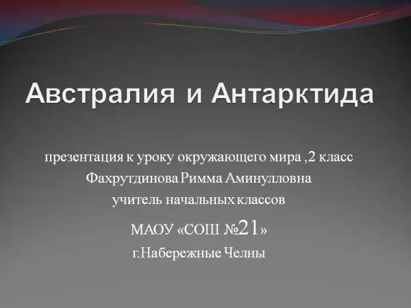 Презентация к уроку окружающего мира "Астралия и Антарктида". 2-й класс