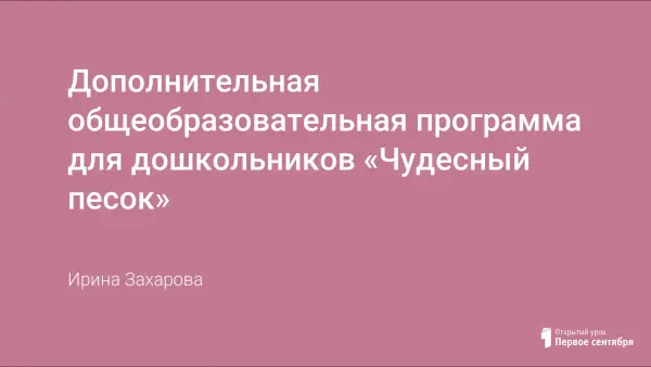Дополнительная общеразвивающая программа «Чудесный песок» имеет социально-педагогическую направленность. Особенности личностного развития в эмоционально-волевой и социальных сферах могут существенно ограничивать возможности ребёнка как в развитии познавательной и эмоциональных сфер, так и в развитии речевых функций. Основная идея программы – используя игры с песком позитивно влиять на эмоциональное самочувствие детей, снизить уровень нервно-психического напряжения, стабилизировать внутреннее состояние, способствовать возникновению положительных эмоций.