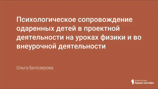 Курс разработан для поддержки и развития одаренных учеников гимназии, в том числе сопровождение проектной деятельности учащихся гимназии МИИТ. Цель: психологическое сопровождение выявления, поддержки и развития талантливых гимназистов, помощь в их самореализации, профессиональном самоопределении, сохранении психологического и физического здоровья.
