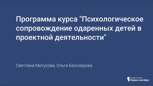 Программа курса "Психологическое сопровождение одаренных детей в проектной деятельности"