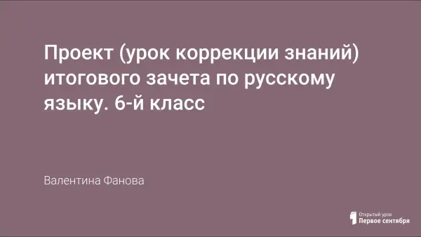 Проект урока русского языка в 6-м классе направлен на коррекцию знаний учащихся через итоговый зачёт в конце учебного года. Вопросы билетов составлены по программе профессора В.В. Бабайцевой. «Русский язык. 5–9-е классы». В материалах урока используется краеведческий материал по ХМАО-Югре. Уделяется внимание экологическому воспитанию учащихся.