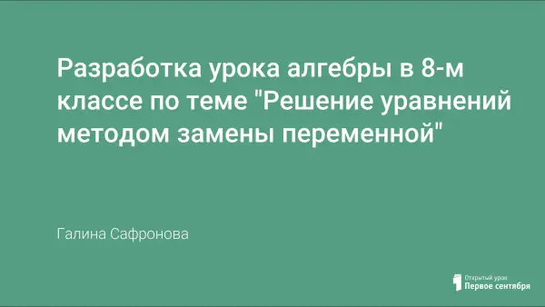 Цель урока: сформировать умение решать уравнения, приводимые к квадратным, методом замены переменной, повторить способы решения неполных квадратных уравнений, формулы сокращенного умножения. Объяснение нового материала осуществляется в результате решения проблемы. Устные упражнения и объяснение нового материала сопровождаются презентацией.