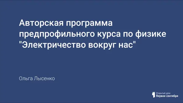Авторская программа предпрофильного курса по физике "Электричество вокруг нас"