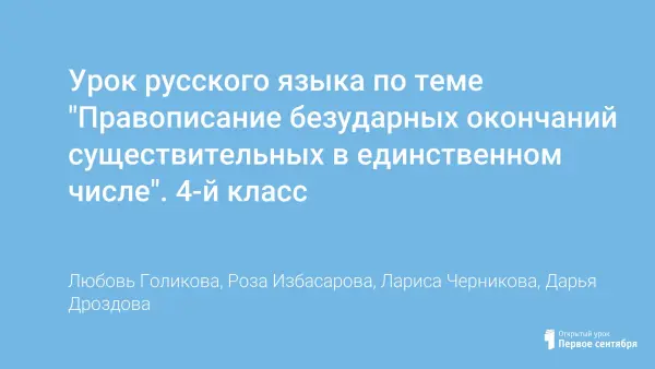 Данный урок способствует формированию навыков грамотного письма безударных окончаний существительных в единственном числе, развитию познавательной активности, речи, мышления, созданию для учащихся разных уровней равных возможностей в реализации учебных навыков. На представленном уроке учащиеся с достаточной полнотой и точностью учатся выражать свои мысли в соответствии с задачами и условиями коммуникации.
