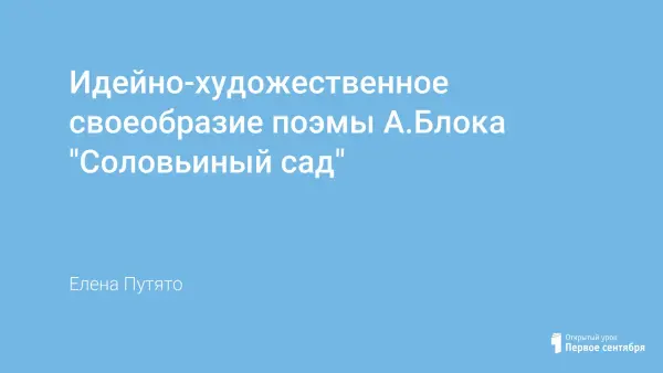Активизировать знания учащихся о своеобразии художественного мира А.Блока и поэтики символизма; раскрыть идейно-художественное своеобразие поэмы А.Блока "Соловьиный сад". Продолжить формирование умения анализа художественного произведения в единстве формы и содержания, с учетом его жанрового своеобразия.