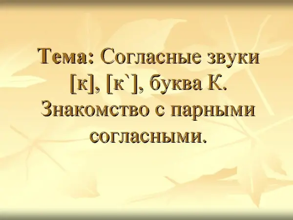 Разработка содержит презентацию и подробный конспект урока. В презентации представлено много интересных и занимательных заданий, направленных на знакомство учащихся со звуками [к], [к'], буквой к, на формирование навыка чтения, развитие фонематического слуха, внимания, мышления, речи детей и привитие интереса к чтению.
