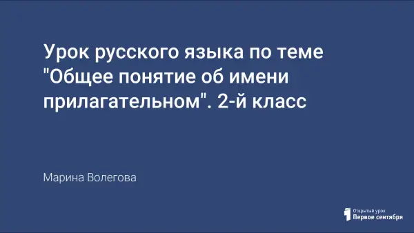 Урок русского языка развивает точность и правильное произношение речи. Цель урока: дать понятие прилагательного, определить его значение в речи, научить осознанному употреблению в речи.