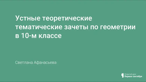 При изучении геометрии целесообразно проводить устные тематические зачеты для проверки усвоения учащимися теоретического материала в конце изучения каждой темы. Зачет состоит из 1–2-х уроков, на которых учащиеся устно отвечают на заранее предложенные вопросы, соответствующие теоретическому материалу учебника.