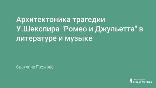 На примере трагедии У.Шекспира "Ромео и Джульетта" учащиеся знакомятся с терминами композиции, показывающими гармонию, красоту и стройность построения великого произведения.
