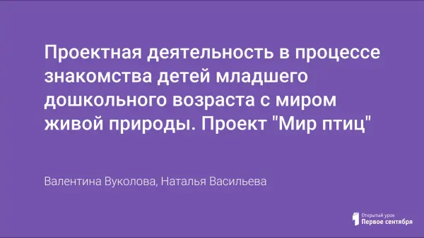 Проектная деятельность в процессе знакомства детей младшего дошкольного возраста с миром живой природы. Проект "Мир птиц"