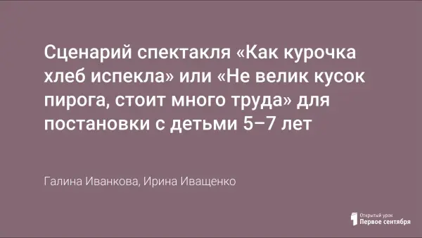 Сценарий спектакля «Как курочка хлеб испекла» или «Не велик кусок пирога, стоит много труда» для постановки с детьми 5–7 лет