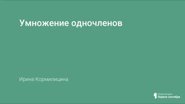 Цели урока: научить умножать одночлены; развивать математическую речь; воспитывать самостоятельность и трудолюбие.