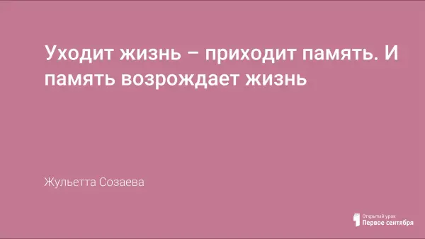 Урок помогает детям понять, почему мы должны помнить трудные времена жизни нашего народа, наших близких; подводит к мысли о необходимости развивать в себе «зоркость сердца», не оставаться равнодушными к чужой беде. Это урок раздумья над такими нравственными понятиями, как доброта и зло, жестокость и милосердие, и о многом другом.