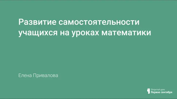 Школа должна не только снабжать ребят базовыми исходными знаниями, но и прививать умение самостоятельно их развивать в дальнейшем. Некоторые виды самостоятельной деятельности на уроках математики и способы развития самостоятельности учащихся: обучающие самостоятельные работы, самостоятельная работа по индивидуальным карточкам, тренировочные задания, привитие школьникам навыка самоконтроля при выполнении домашнего задания.