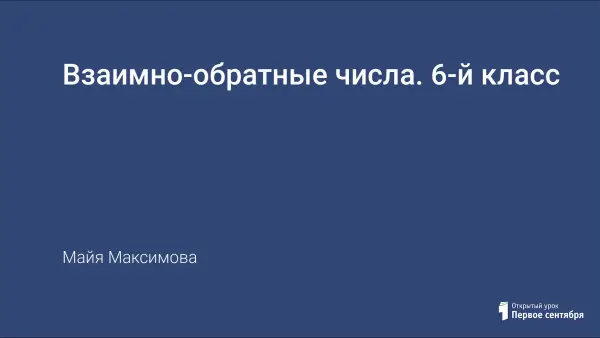 Урок направлен на формирование умения находить взаимно-обратное число для натуральных чисел, неправильных дробей, а также для десятичных дробей; нахождение произведения чисел содержащих взаимно-обратные числа; развитие познавательного интереса, логического мышления учащихся.
