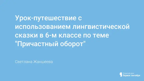 Урок-путешествие с использованием лингвистической сказки знакомит учащихся с понятием «причастный оборот» и его синтаксическим синонимом – предложением с союзным словом «который», вырабатывает умение видеть опознавательные признаки причастного оборота, правильно определять его границы, заменять конструкции со словом «который» причастным оборотом; повторяет правописание непроверяемых гласных, приобщает учащихся к мировой культуре.