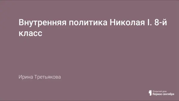 Данный урок ставит своей целью формирование межпредметных знаний и умений у учащихся. Анализ различных видов текстовой информации по некоторым направлениям внутренней политики Николая I способствует формированию у учащихся навыков определения проблемы, постановки задач, обобщения, выявления и разрешения противоречий, а также навыков работы с информацией. Музыкальные произведения, используемые в ходе урока, создают эмоциональный настрой.