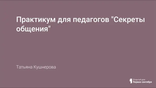 Практикум для педагогов с целью создания благоприятного психологического климата в группе; ознакомления со способами общения с другими людьми; углубления процесса самопознания; отработки приёмов уверенного поведения и усиления чувства уверенности в себе.