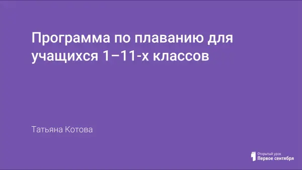 Статья содержит программу по спортивному плаванию в условиях школы, способствующая развитию двигательных умений и навыков, укреплению здоровья учащихся. Программа рассчитана на учащихся 1–11-го классов и может быть реализована в любой школе, имеющей бассейн. Владение навыками плавания является необходимой компетенцией, позволяющей человеку уверенно чувствовать себя не только в бассейне, но и в открытом водоеме.