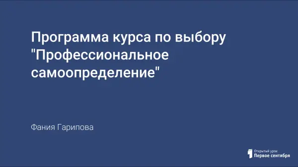 Основной целью введения программы является подготовка учащихся к будущей жизни. Курс по выбору «В мире профессий» дает возможность развивать свои интересы и склонности в соответствии с результатами тестов и различных методик. Учащиеся готовятся к обоснованному выбору профессии, карьеры, жизненного пути с учетом своих склонностей, способностей, состояния здоровья и потребностей рынка труда в специальностях.