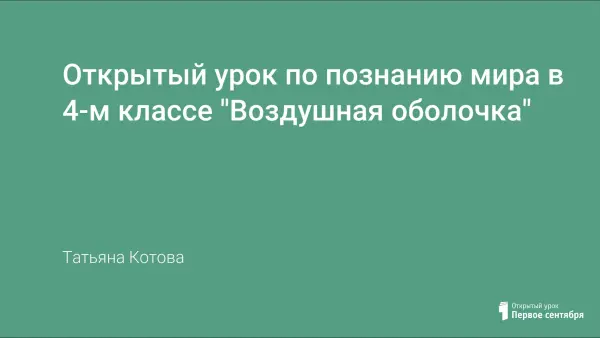 Цель урока: формировать начальные понятия о воздушном слое, функциях каждого слоя воздуха, связи между воздушным слоем, сушей и деятельностью человека, систематизировать материал о воздухе за прошлые уроки, дополнить новыми сведениями.