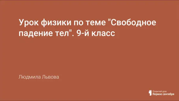 Урок позволяет проследить историю становления и развития научных взглядов, что даёт возможность учащимся глубже понять физическую сущность природного явления через экспериментальный метод познания природы на основе эффективности организации учебного процесса. Изучается явление свободного падения тел и ускорения свободного падения; рассматривается применение уравнений равноускоренного движения на свободное падение тел.