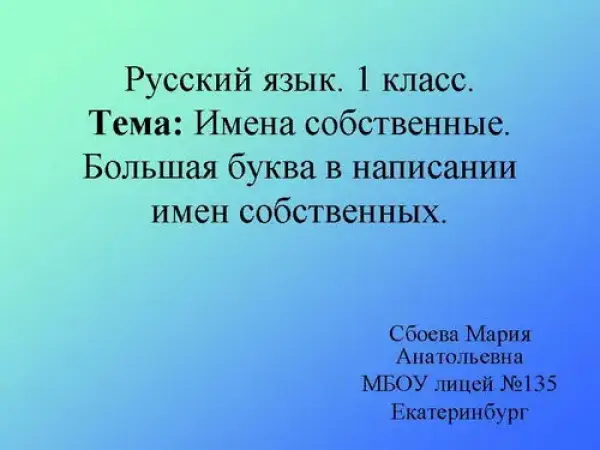 Цель урока: подвести детей к осмыслению понятия "имена собственные" и написанию имен собственных с заглавной буквы.