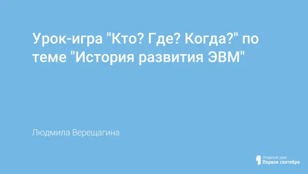 На уроке повторяются и обобщаются знания по теме «История развития ЭВМ»; выявляются лучшие эрудиты среди обучающихся; формируются умения и навыки, которые носят общеинтеллектуальный характер.