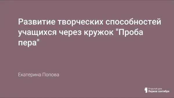 На уроке формируются коммуникативные умения и навыки, творческие способности учащихся. Повышается общая языковая культура; прививается любовь и уважение к великому русскому языку. В статье представлены работы учащихся из кружка "Проба пера".