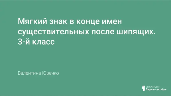 Цели урока: закрепить знания детей о роли ь в словах; формировать у детей умение распознавать существительные мужского и женского рода с шипящей на конце; находить орфограмму ь после шипящих у имён существительных и грамотно писать их; развивать умение группировать, анализировать, умение выделять главное; воспитывать культуру речи, быть внимательным.