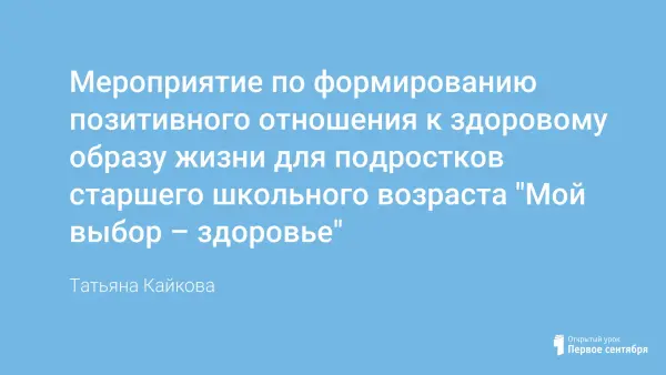 Мероприятие направлено на расширение представлений подростков о здоровом образе жизни. Оно знакомит с понятиями «привычки» и «болезни». В доступной форме рассматриваются вопросы: составляющие понятия здоровья, здорового образа жизни. Основная задача педагога сформировать у подростков установку на здоровый образ жизни.