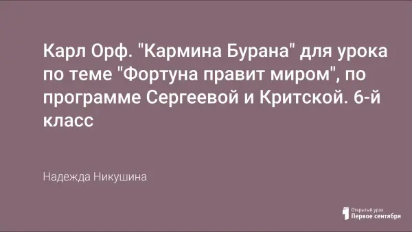 Задачи урока: познакомить учащихся со сценической кантатой Карла Орфа «Кармина Бурана»; вспомнить, что такое кантата, оратория; как переродились в XX веке жанры кантата и оратория.