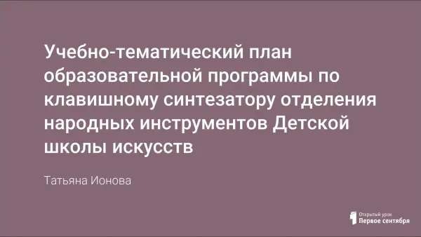 Образовательная программа помогает учащемуся ДШИ в рамках предмета по выбору на отделении народных инструментов познакомиться с возможностями синтезатора, освоить технику исполнения, получить новый импульс для музыкального развития и творчества.