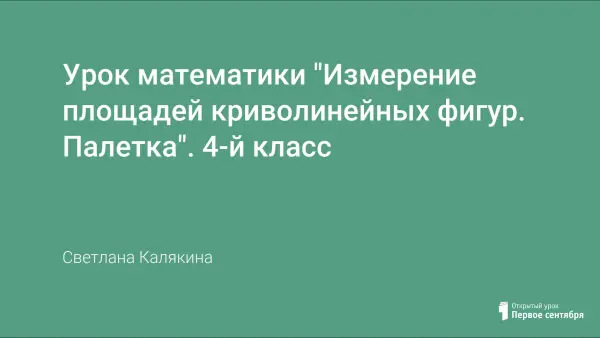 Урок математики в 4-м классе построен на принципах развивающего обучения. Новый материал предлагается в виде проблемы: как найти площадь криволинейной фигуры? В ходе общеклассной дискуссии учащиеся находят способ измерения площади криволинейной фигуры с помощью палетки и выводят формулу нахождения площадей криволинейных фигур. Урок расширяет знания учащихся по нахождению площадей геометрических фигур.