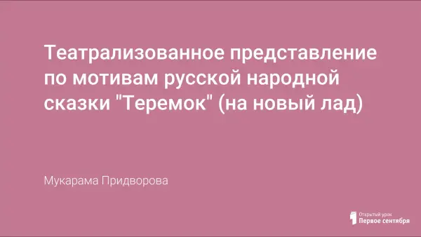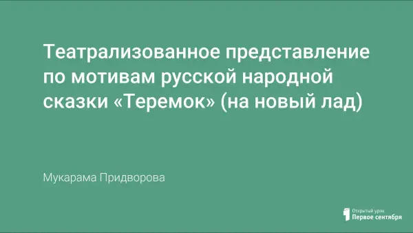 В школе автора ежегодно проводится мероприятие «Театральный переполох». В рамках этого мероприятия представлено театрализованное представление по мотивам русской народной сказки «Теремок» (на новый лад), которое учит детей дружить, бережно относиться к книгам, к друзьям.
