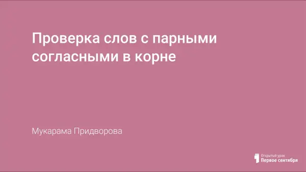 Урок русского языка в 3-м классе. На уроке дети овладевают способами проверки слов с парным согласным на конце и в корне, учатся подбирать проверочные слова к словам с парным согласным в корне слова, распознают слова с парным согласным в корне слова, развивается орфографическая зоркость по правописанию слов с парными согласными в корне слова и на конце.