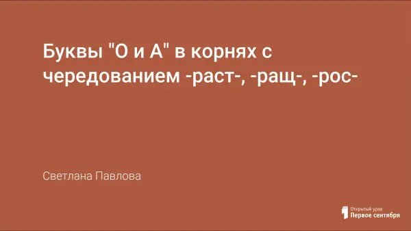 Урок закрепляет правила написания корней с чередующейся гласной, правописание корней с проверяемой и непроверяемой безударной гласной; вырабатывается умение находить слова с изученной орфограммой. Развивает речь, память и образное мышление учащихся.