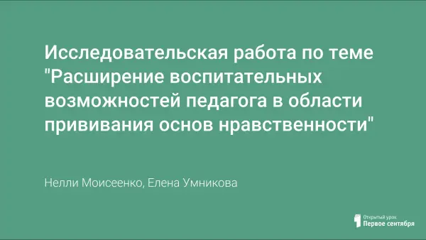 Исследовательская работа по теме "Расширение воспитательных возможностей педагога в области прививания основ нравственности"