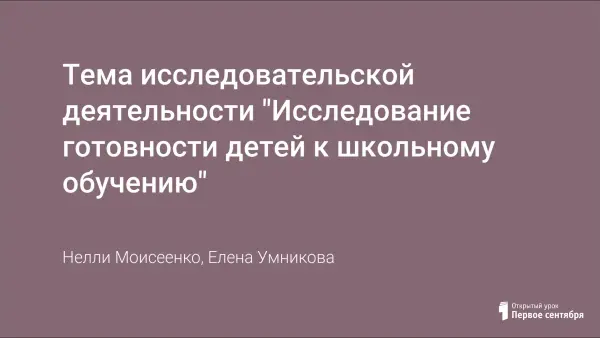 Тема исследовательской деятельности "Исследование готовности детей к школьному обучению"
