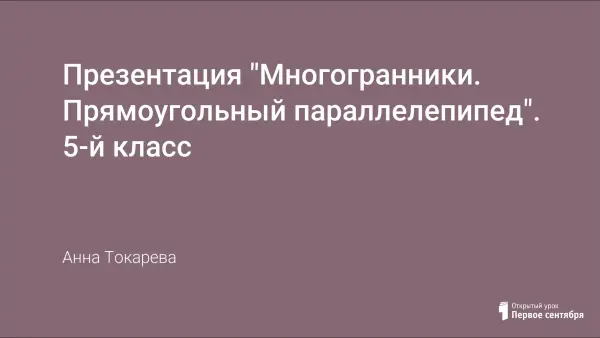 Представлена презентация к уроку математики в 5-м классе по теме "Многогранники. Прямоугольный параллелепипед".